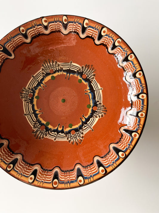 Vintage Bulgarian Troyan Pottery Pedestal Bowl