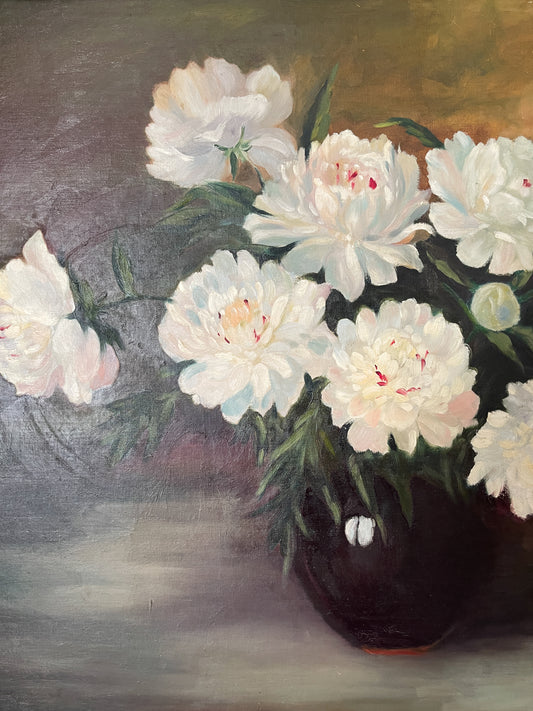 Large Vintage Framed Peony Still Life Oil Painting