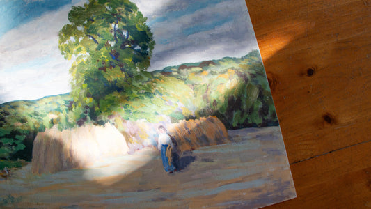 Vintage Unframed Oil Painting After Camille Pissarro The Harvest at Montfoucault