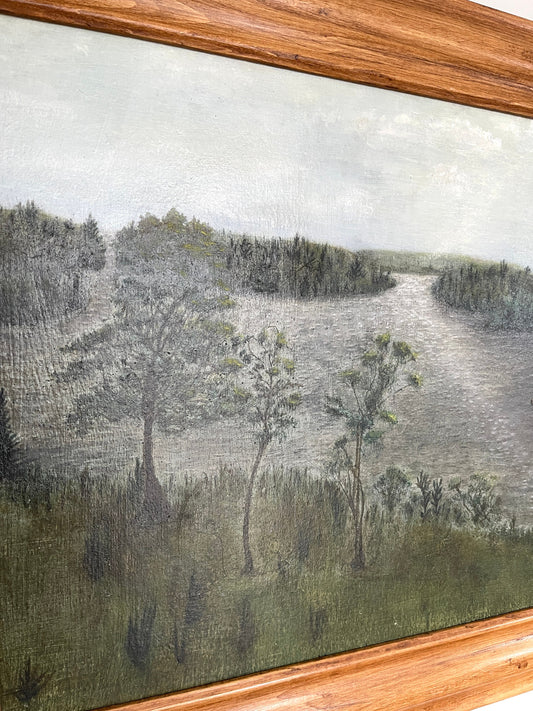 Vintage Framed Naive Oil Painting Cedar Beach