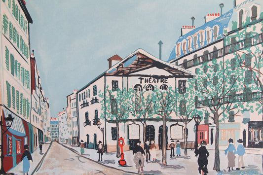 Large Vintage Framed Montmartre Theatre Utrillo Lithograph