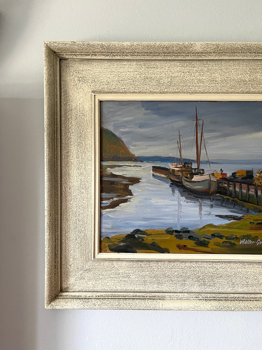 Vintage Framed Canadian Artist Walter Grayson Boats Oil Painting