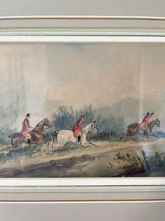 Pair of Vintage Framed Harry Hilton Fox Hunting Watercolours