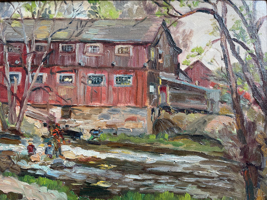 Vintage Framed Canadian Artist Roy Greenaway Mill Oil Painting