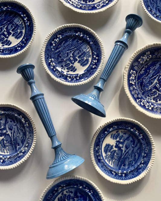 Vintage Studio Pottery Blue Leaf Chamberstick