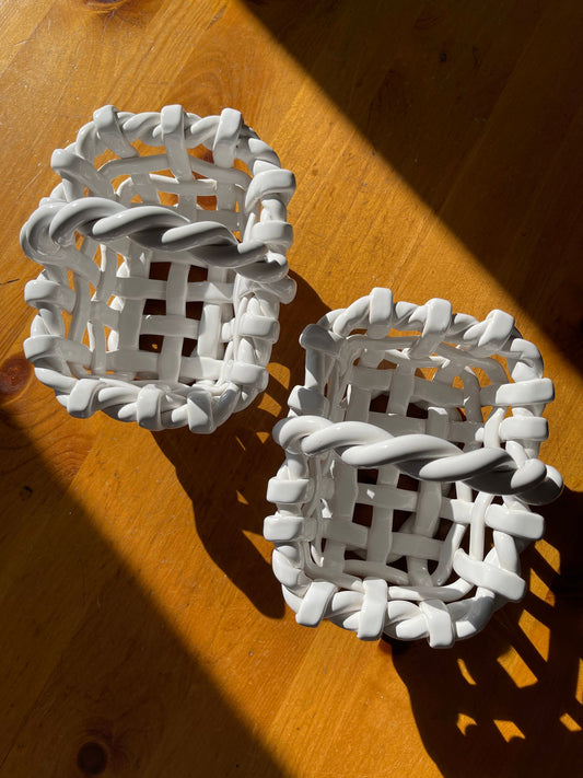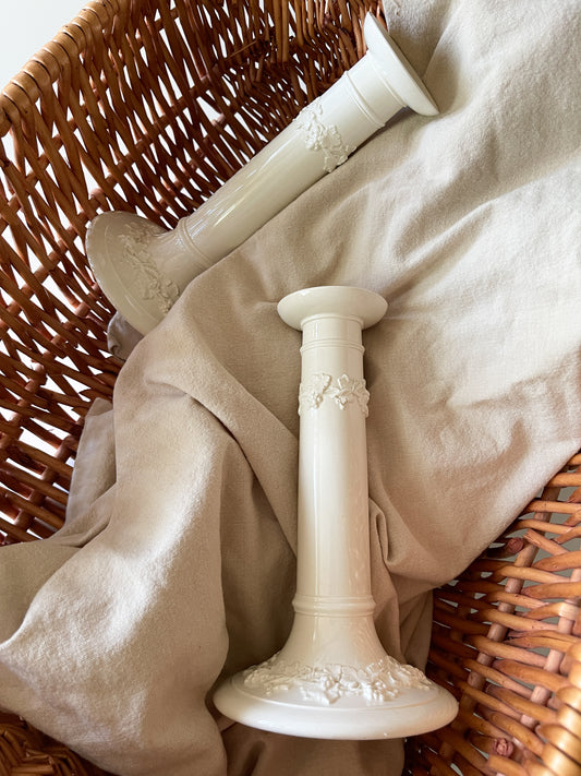 Pair of Vintage Chapelle Pottery Spongeware Chambersticks
