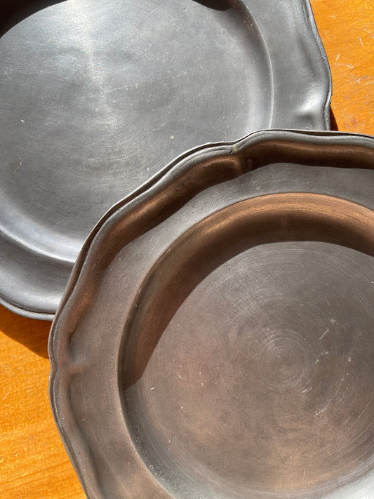 Pair of Antique English Crowned Tudor Rose Pewter Wall Plates
