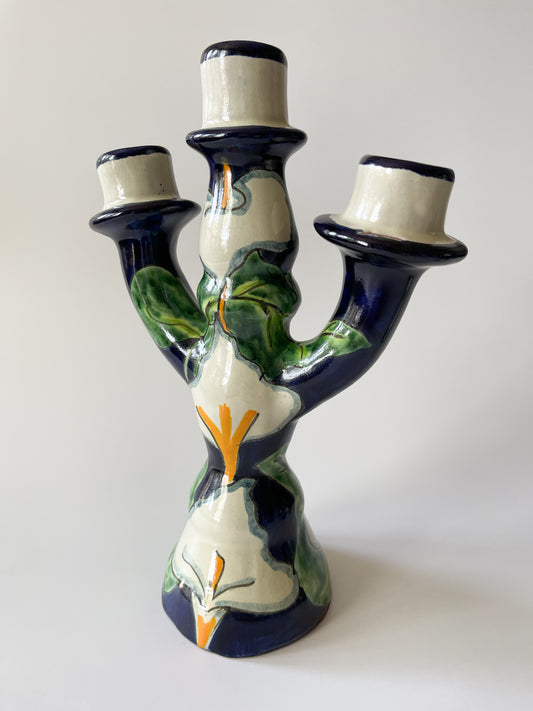 Pair of Vintage Mexican Talavera Pottery Candelabras