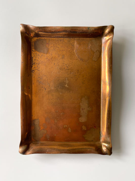 Antique Tiffany & Co. Copper Wedding Invitation Tray / Printing Plate, 1919