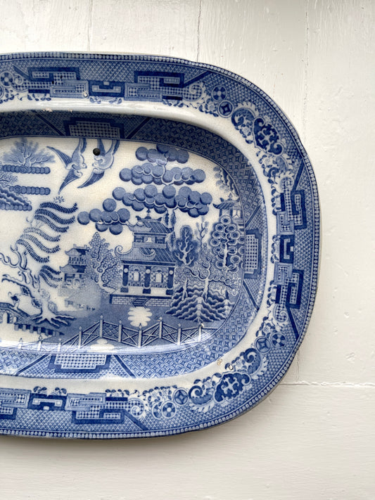 Antique Early 19th-Century Staffordshire 'Blue Willow' Platter