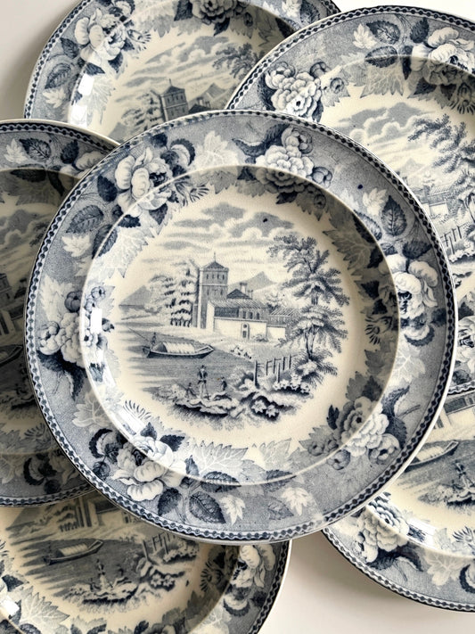 Antique Wedgwood Transferware Blue Rose Plates