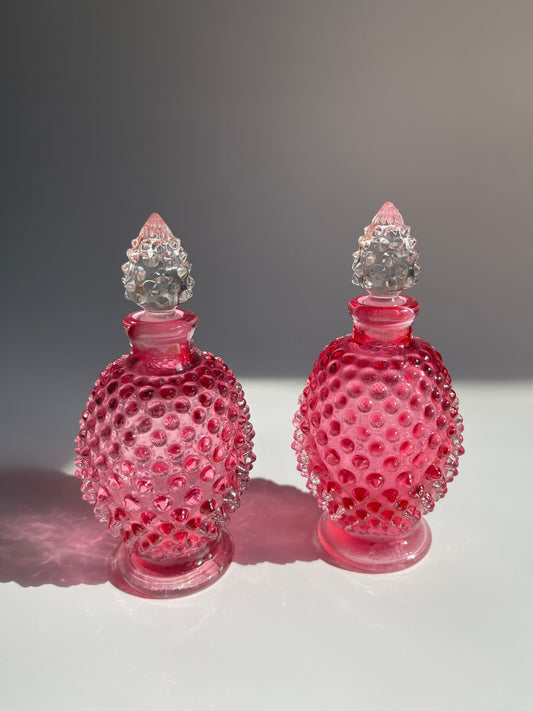 Vintage Fenton Cranberry Glass Hobnail Perfume Bottles