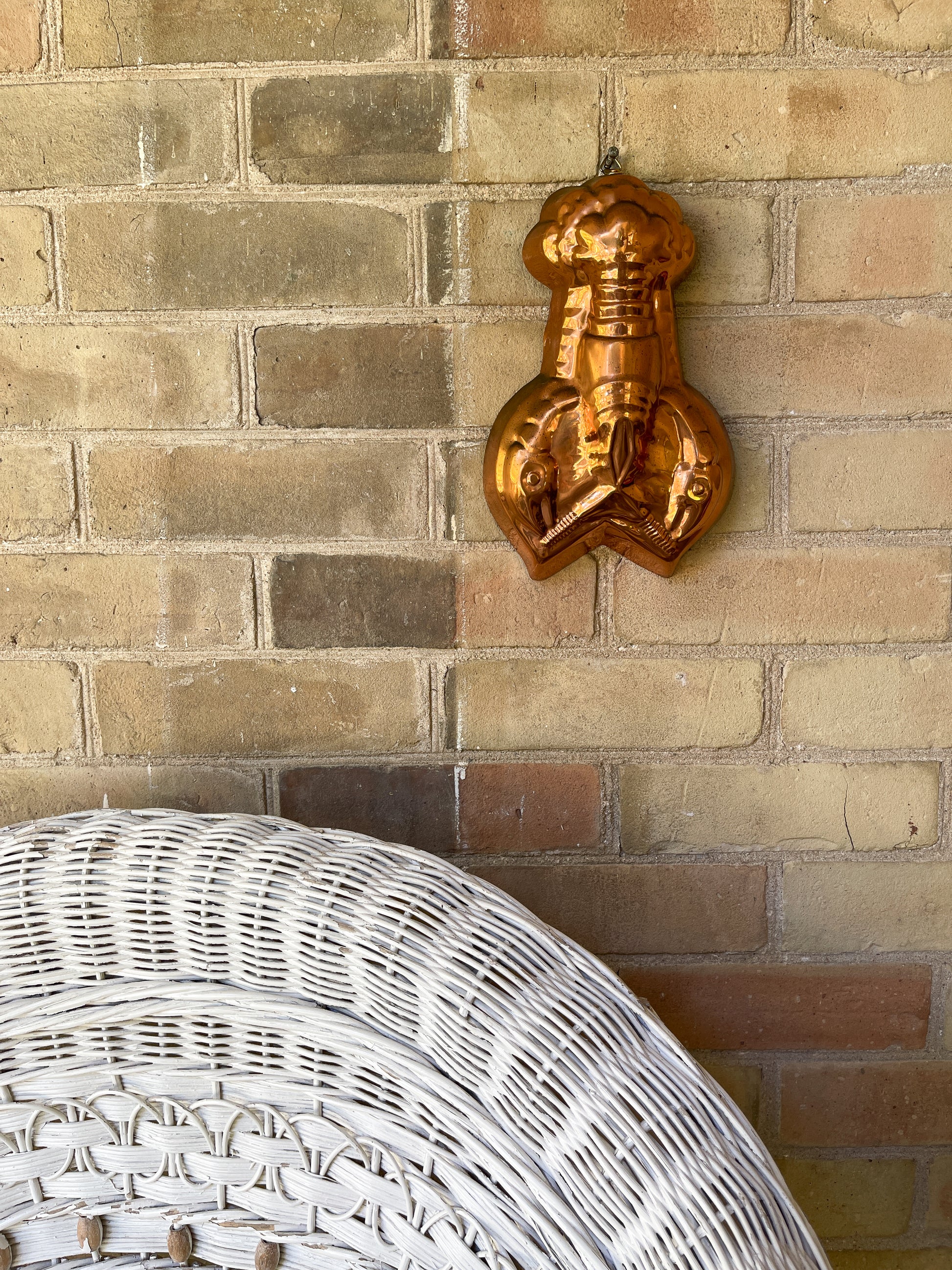 Vintage tin lined solid copper lobster mold, circa 1960s-1980s.