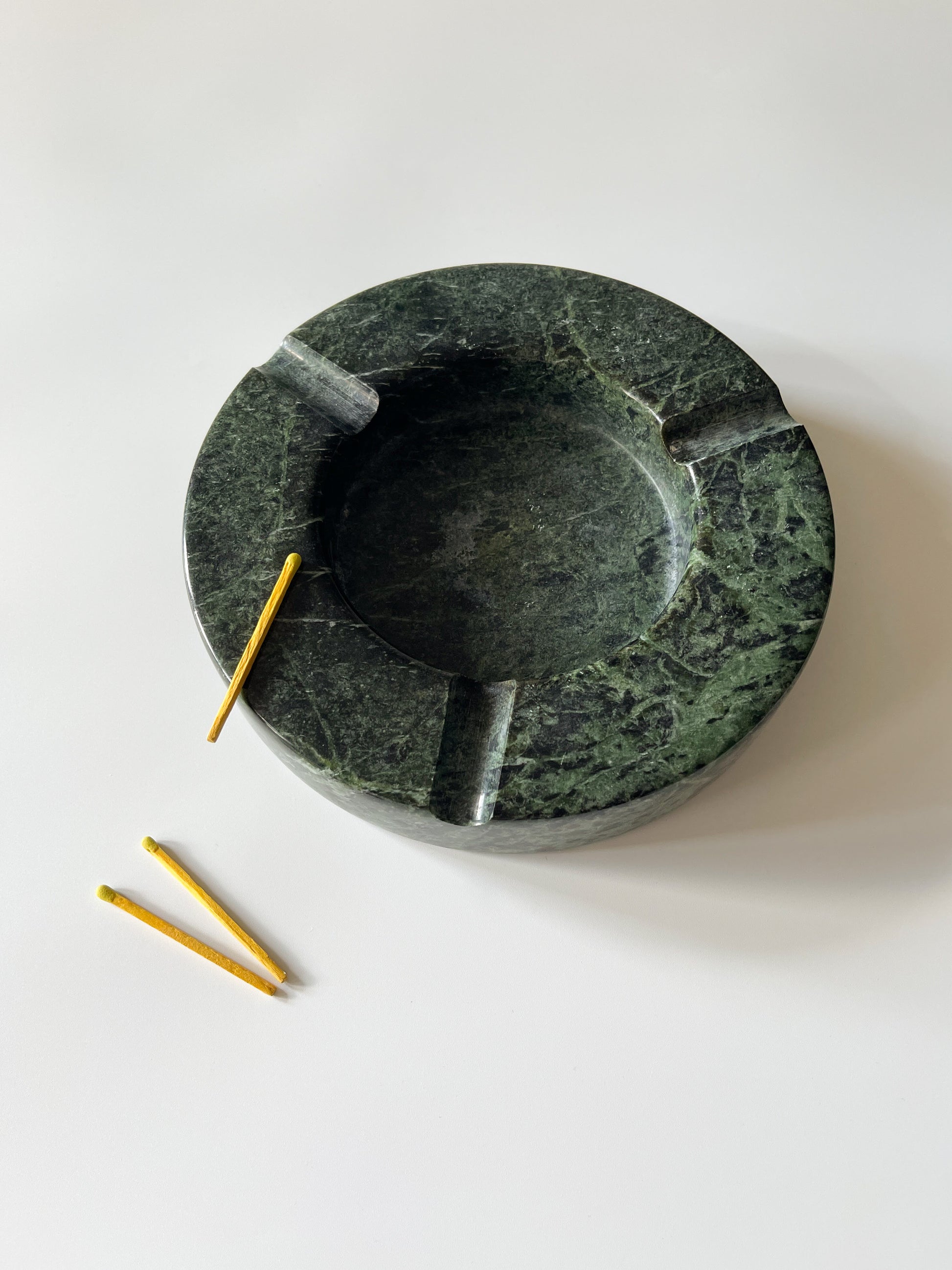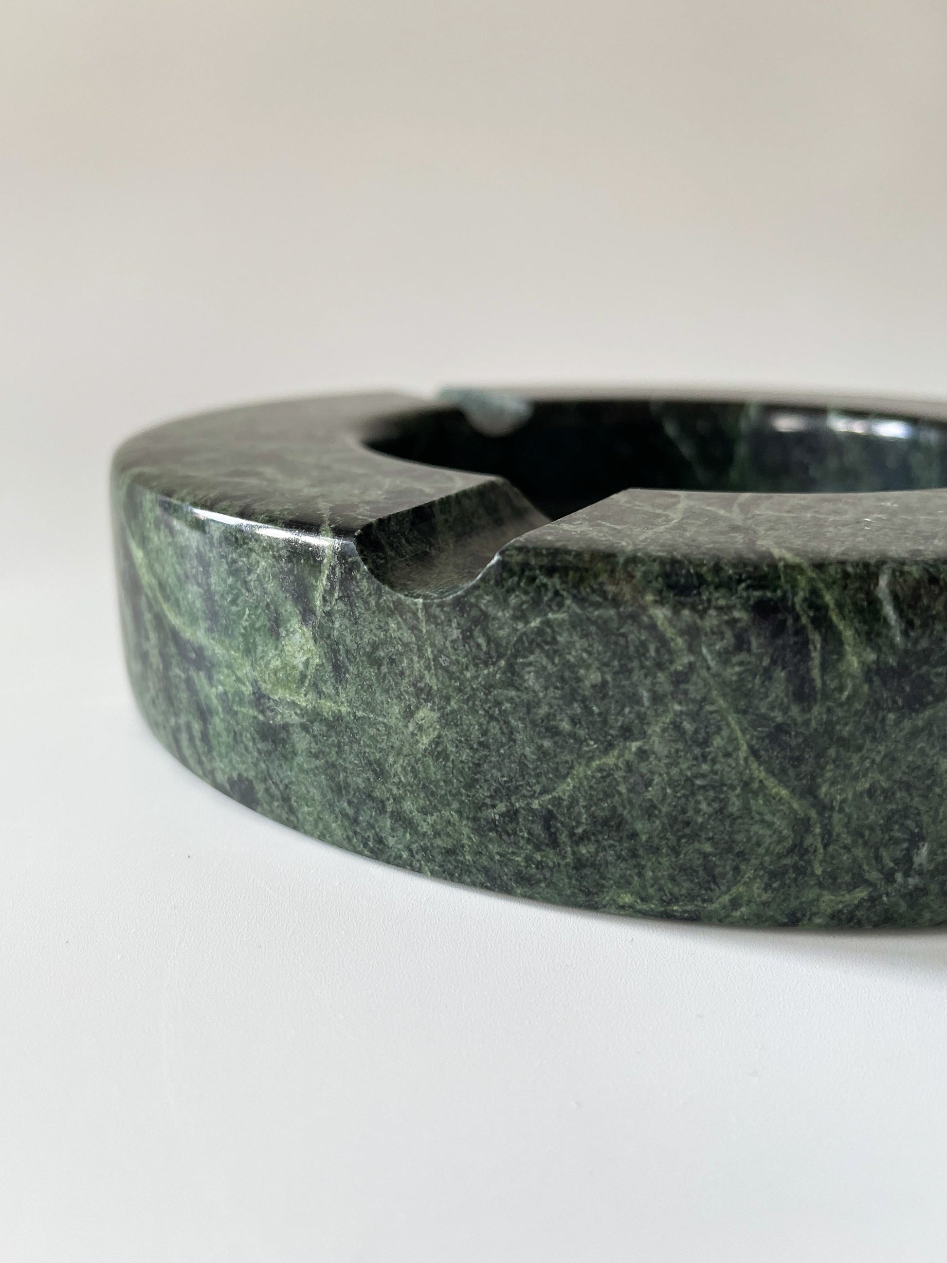 Vintage oversized and heavy, round green marble ashtray, circa mid to late 20th century.