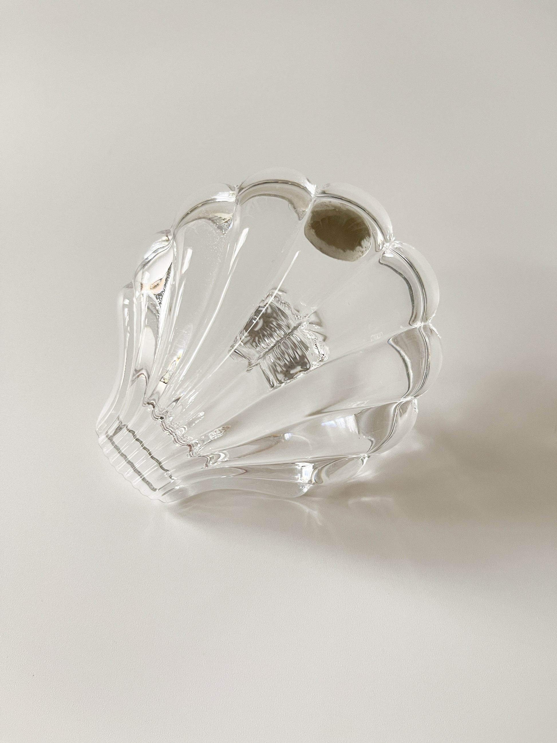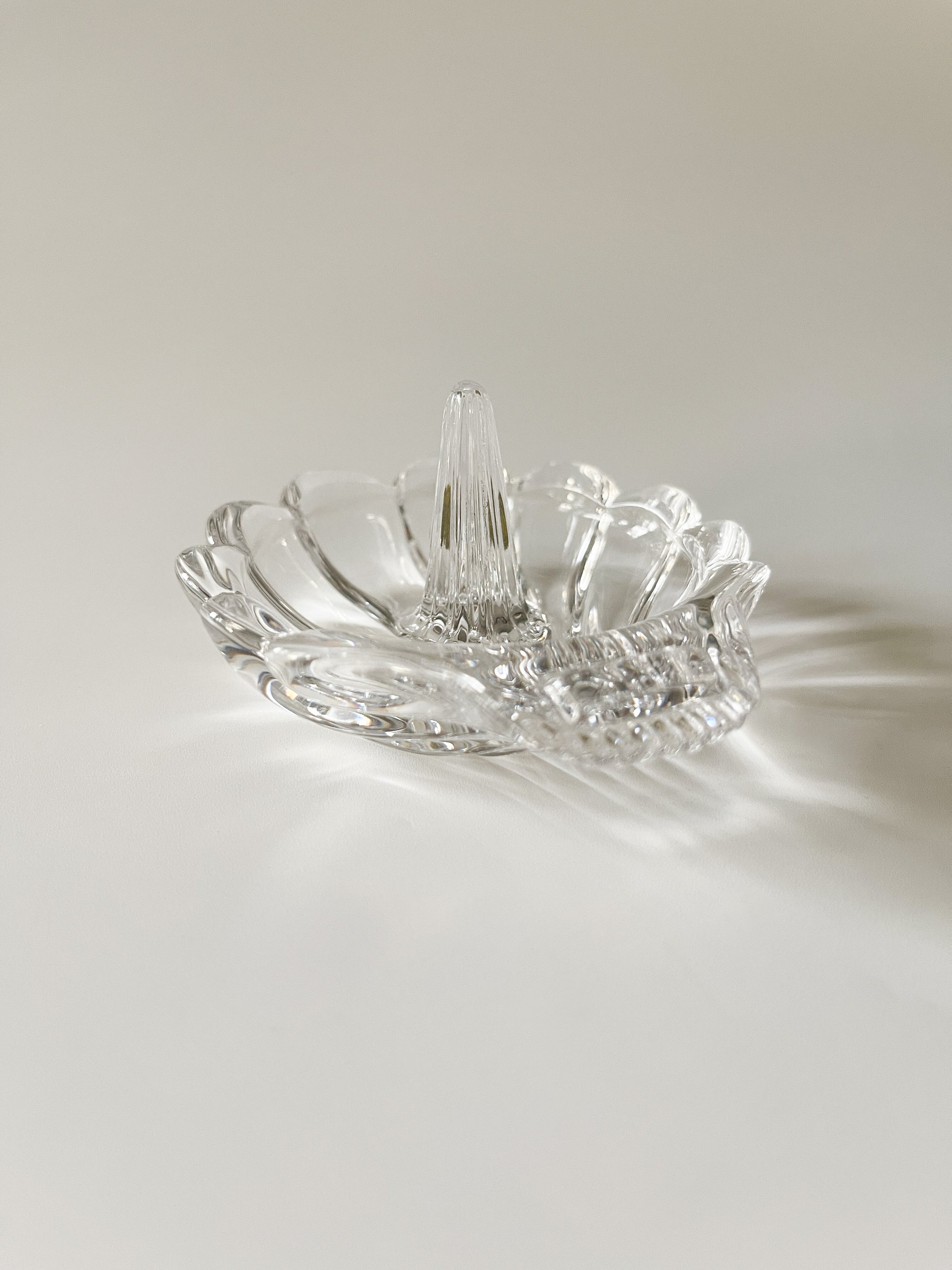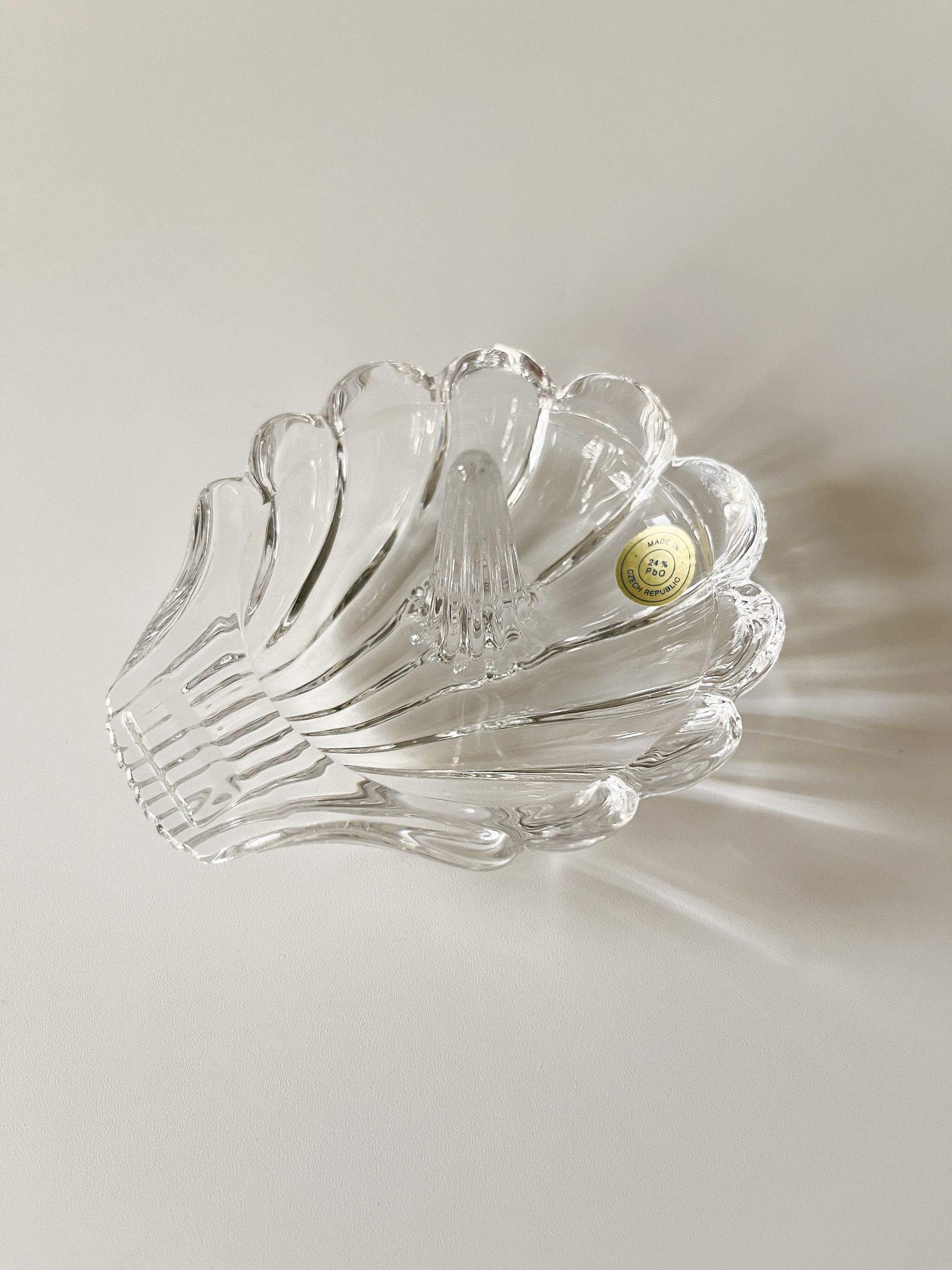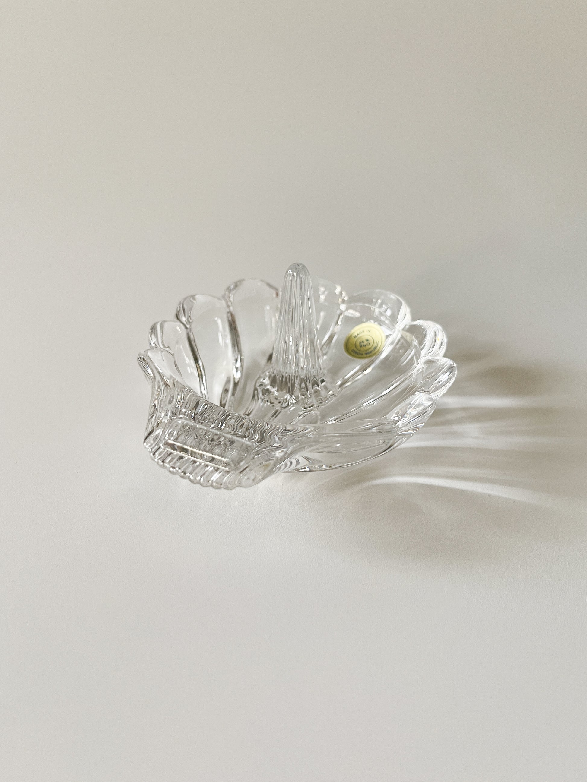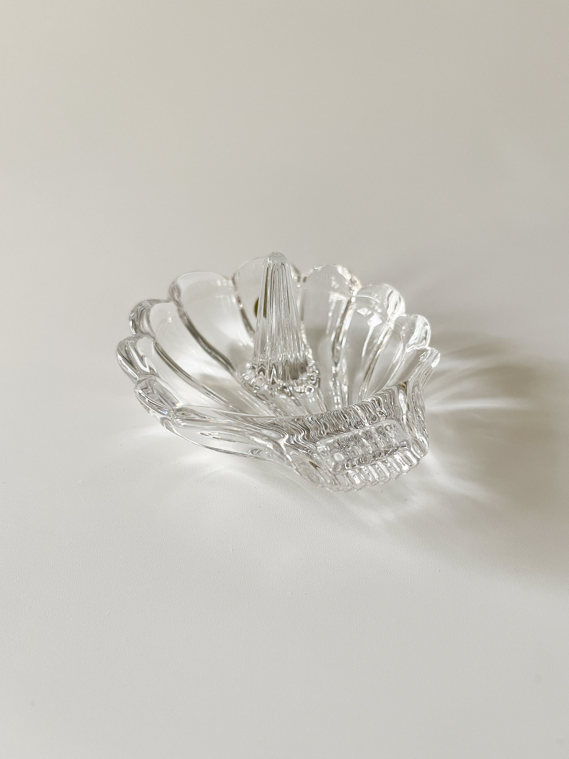 Vintage lead crystal shell ring holder.
