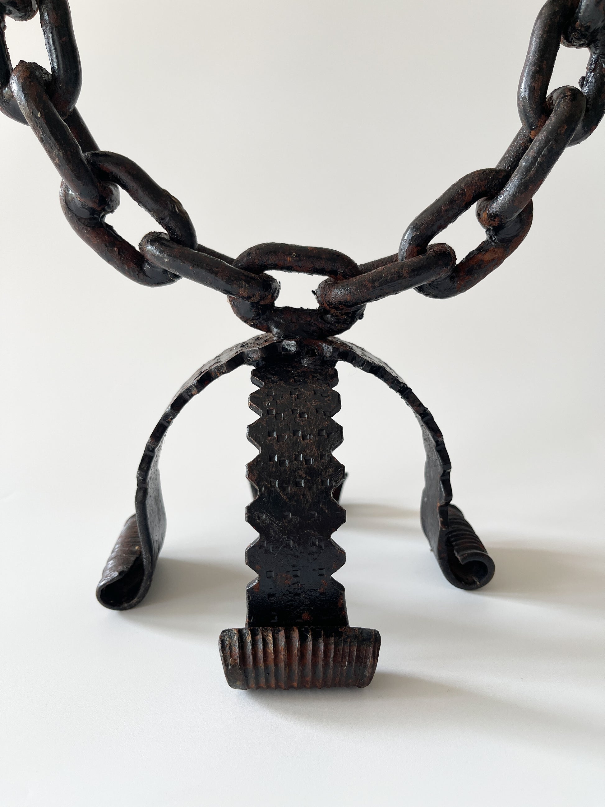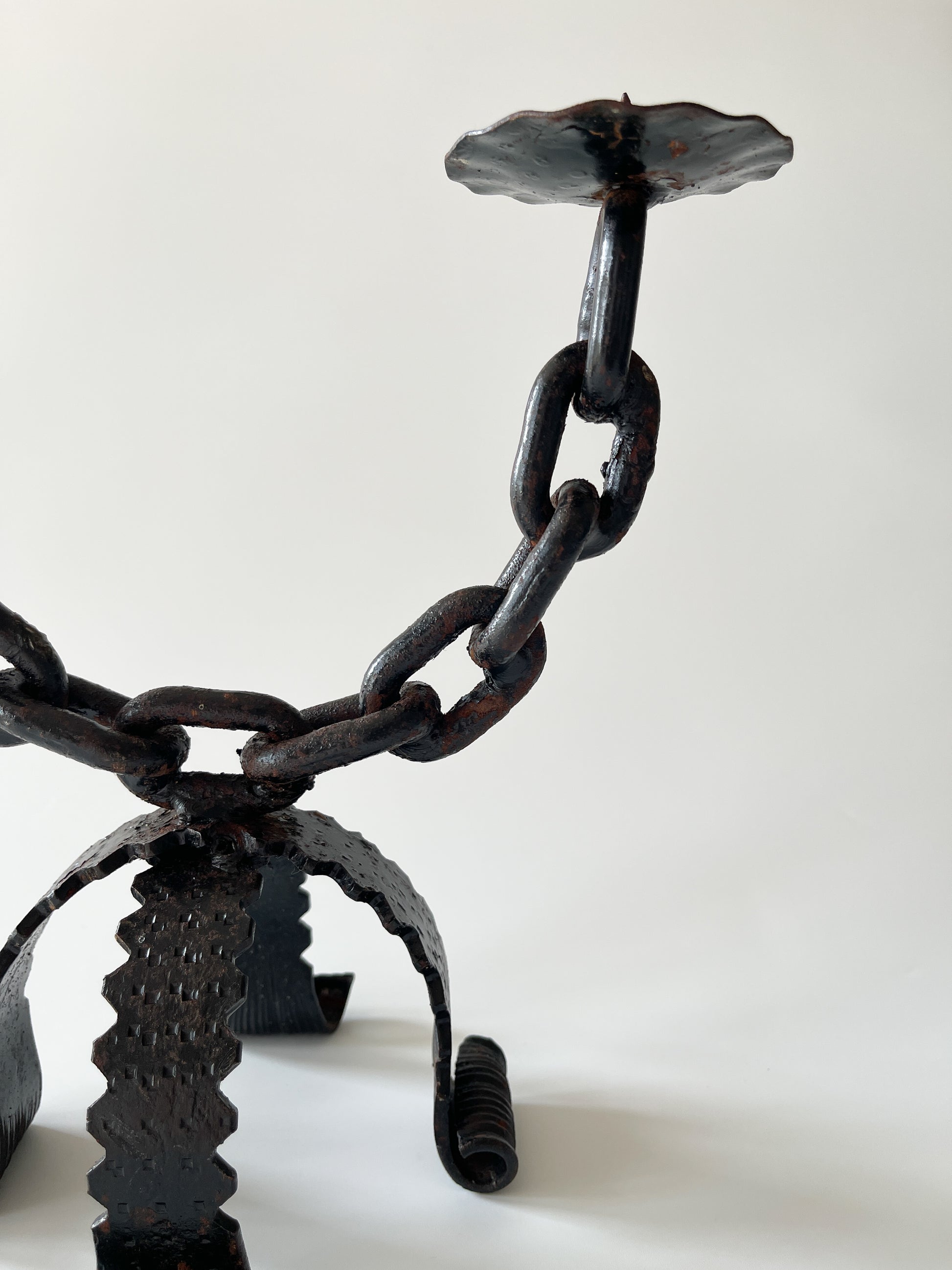 Vintage brutalist wrought iron chain link two-arm candelabra.